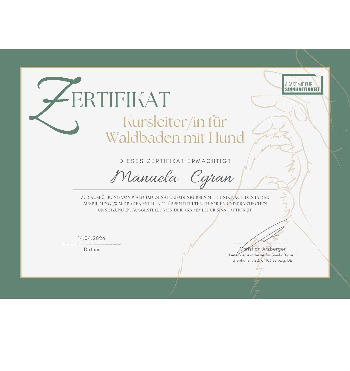 Entfliehen Sie dem Alltag und stärken Sie die Bindung zu Ihrem Hund in der beruhigenden Atmosphäre des Waldes. Waldbaden entschleunigt sowohl Mensch als auch Tier, fördert Ruhe und Ausgeglichenheit. Entdecken Sie die sauerstoffreiche Luft und das Wohlbefinden, das die Natur bietet. Begleiten Sie uns auf dieser Reise zu mehr Gelassenheit und Verbundenheit.